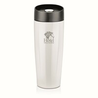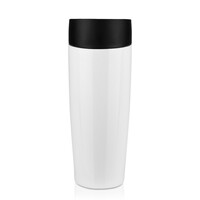 Kubek termiczny 375 ml Air Gifts, posiada podwójne ścianki ze stali nierdzewnej z miedzianą izolacją próżniową, co spowalnia oddawanie temperatury na zewnątrz, zachowując funkcje termosu, plastikowe wieczko z przyciskiem otwarcia/zamknięcia ustnika umożliwiającym obsługę jedną ręką, błyszczące wykończenie, utrzymuje temperaturę napojów gorących do 10 godzin +leakproof