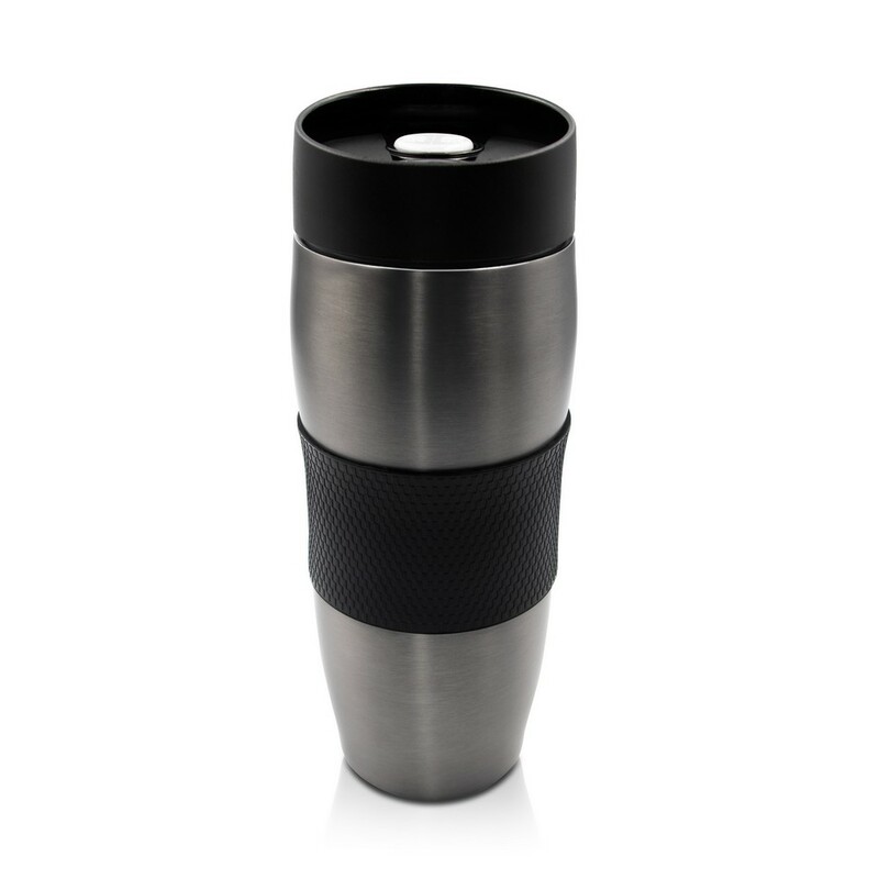 Kubek termiczny 375 ml Air Gifts, posiada podwójne ścianki ze stali nierdzewnej z miedzianą izolacją próżniową, co spowalnia oddawanie temperatury na zewnątrz, zachowując funkcje termosu, plastikowe wieczko z przyciskiem otwarcia/zamknięcia ustnika umożliwiającym obsługę jedną ręką, gumowy uchwyt zwiększający wygodę użytkowania, półmatowe wykończenie, utrzymuje temperaturę napojów gorących do 15 godzin +leakproof