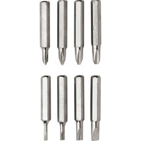 Śrubokręt w kształcie długopisu z 4 płaskimi i 4 krzyżakowymi końcówkami, posiada klip umożliwiający przypinanie, produkt wykonany z aluminium i stali