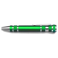 Śrubokręt w kształcie długopisu z 4 płaskimi i 4 krzyżakowymi końcówkami, posiada klip umożliwiający przypinanie, produkt wykonany z aluminium i stali