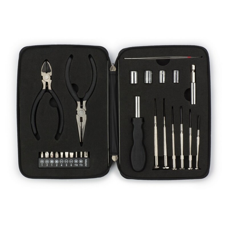 Zestaw narzędzi, 26 el. w metalowym pudełku na zamek błyskawiczny