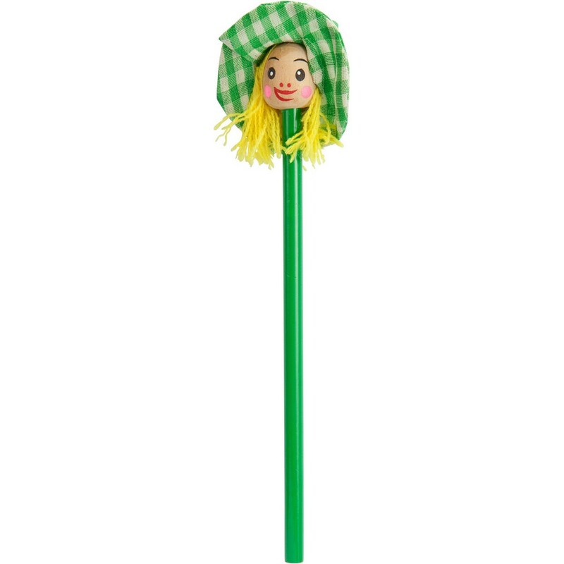 Ołówek "czarownica" z kolorowym trzonem, końcówka nie jest naostrzona, występuje w 6 różnych wzorach sprzedawanych losowo, produkt wykonany z drewna