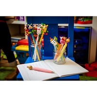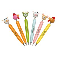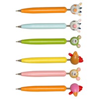 Długopis "zwierzątko" z kolorowym trzonem, występuje w 6 różnych wzorach sprzedawanych losowo, wkład w niebieskim kolorze, produkt wykonany z drewna i żelaza