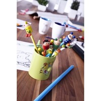 Ołówek "zwierzątko" z kolorowym trzonem, końcówka nie jest naostrzona, występuje w 5 różnych wzorach sprzedawanych losowo: tygrys, biedronka, mysz, żaba i krowa, produkt wykonany z drewna i nylonu