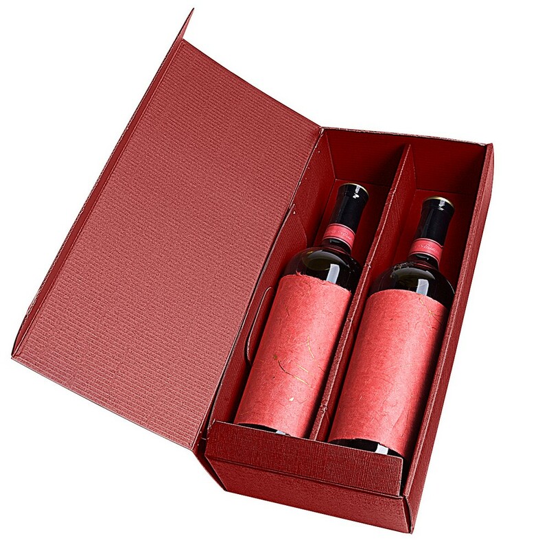 Ekskluzywny kartonik na wino z miejscem na 2 butelki (nie są dołączone), pudełko otwierane od przodu i z wyjmowaną przegrodą, produkt wykonany z papieru. Wyprodukowany w Europie / made in Europe.
