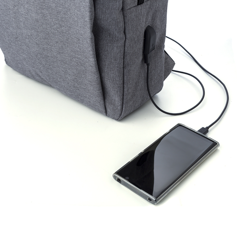 Plecak z główną przegrodą i przednią kieszenią na zamek błyskawiczny, regulowane miękkie paski na ramię, gniazdo USB do ładowania telefonów (power-bank nie dołączony)