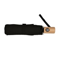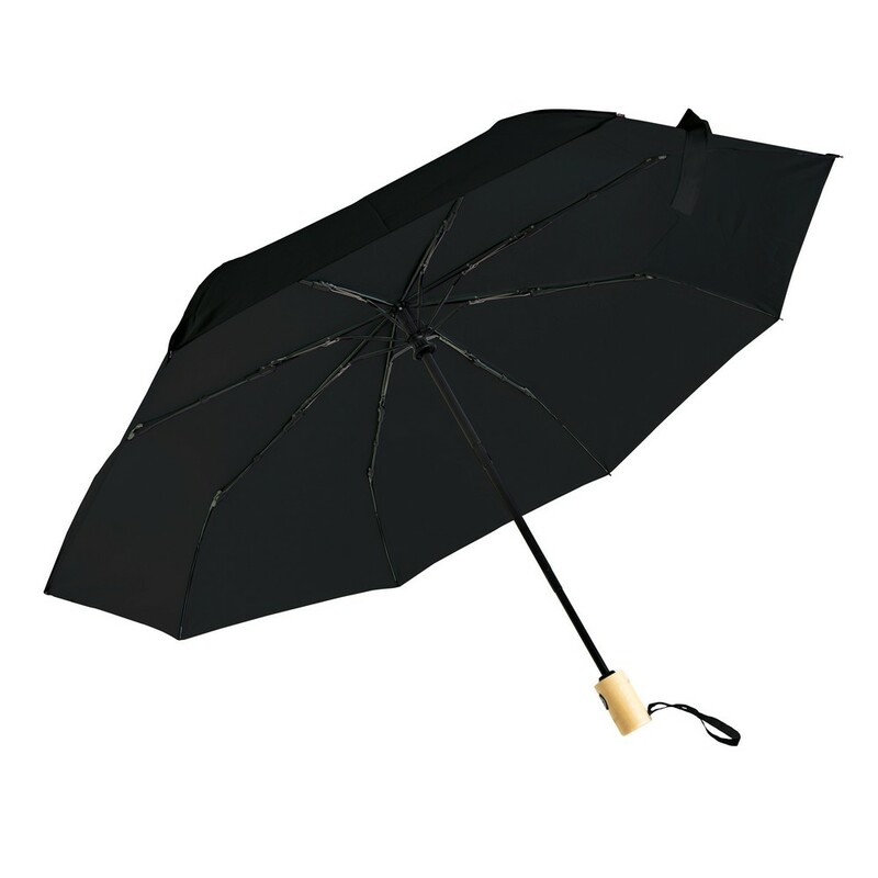 Parasol automatyczny, składany, wykonany z RPET, drewniana rączka z uchwytem na rękę w kolorze paneli, 8 paneli, zapięcie na rzep, pokrowiec w komplecie