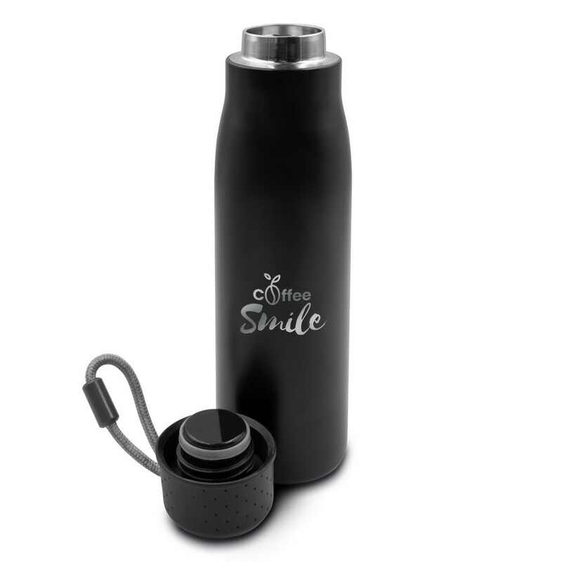 Butelka termiczna 550 ml Air Gifts z uchwytem, podwójne ścianki ze stali nierdzewnej z próżnią między ściankami dzięki czemu zachowuje funkcje termosu i długo utrzymuje temperaturę nie oddając jej na zewnątrz, matowe wykończenie, utrzymuje temperaturę napojów gorących do 10 godzin +leakproof