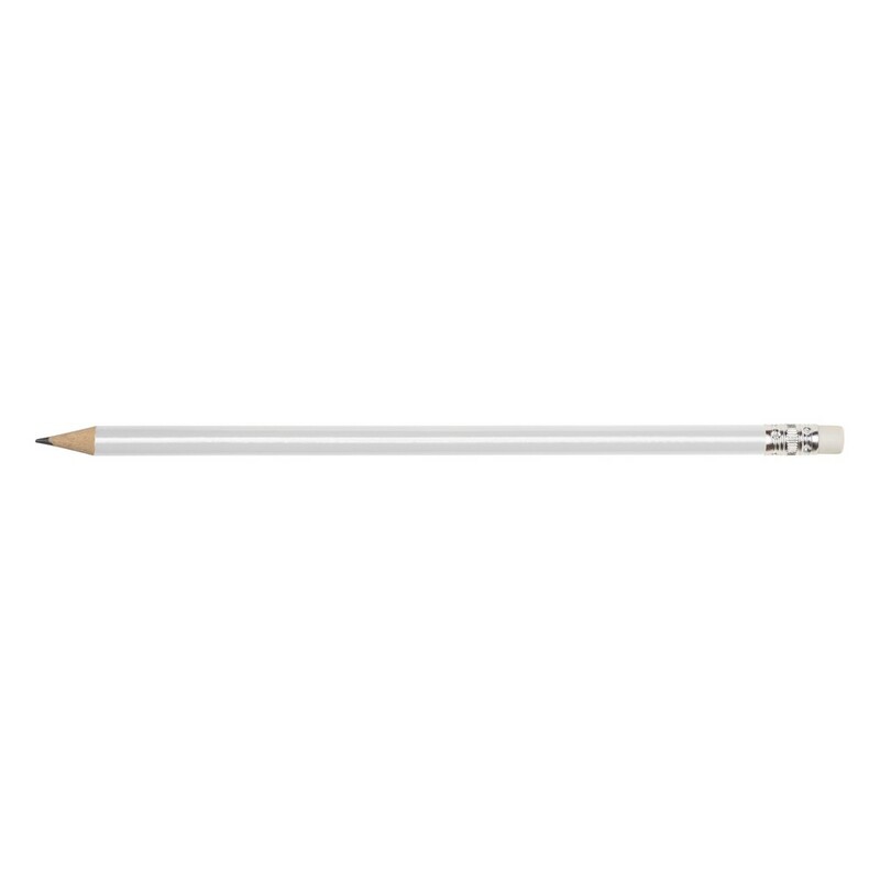 Ołówek z gumką i kolorowym trzonem, posiada naostrzoną końcówkę, produkt wykonany z drewna