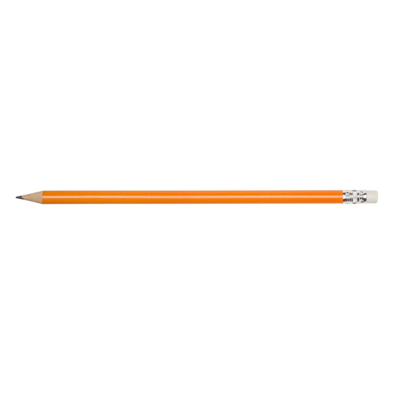 Ołówek z gumką i kolorowym trzonem, posiada naostrzoną końcówkę, produkt wykonany z drewna