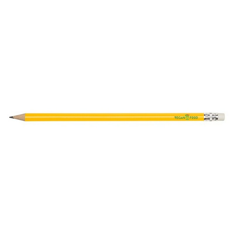Ołówek z gumką i kolorowym trzonem, posiada naostrzoną końcówkę, produkt wykonany z drewna