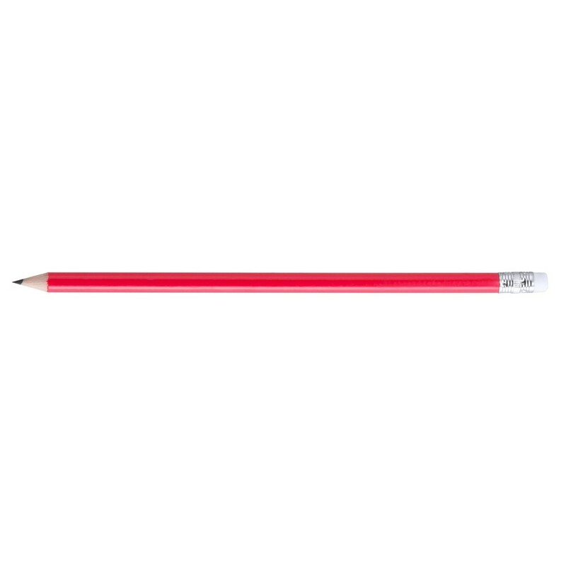 Ołówek z gumką i kolorowym trzonem, posiada naostrzoną końcówkę, produkt wykonany z drewna