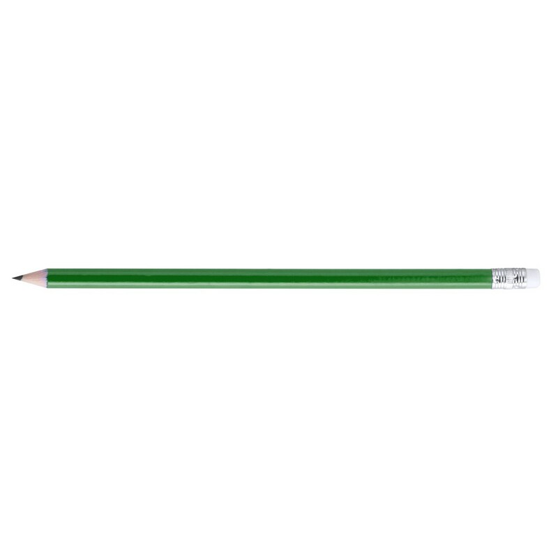 Ołówek z gumką i kolorowym trzonem, posiada naostrzoną końcówkę, produkt wykonany z drewna