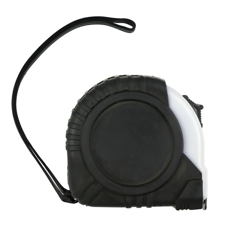 Miara 3 m z uchwytem ułatwiającym noszenie i klipem, posiada mechanizm blokujący, korpus pokryty gumą, produkt wykonany z PP