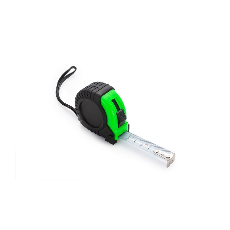Miara 3 m z uchwytem ułatwiającym noszenie i klipem, posiada mechanizm blokujący, korpus pokryty gumą, produkt wykonany z PP