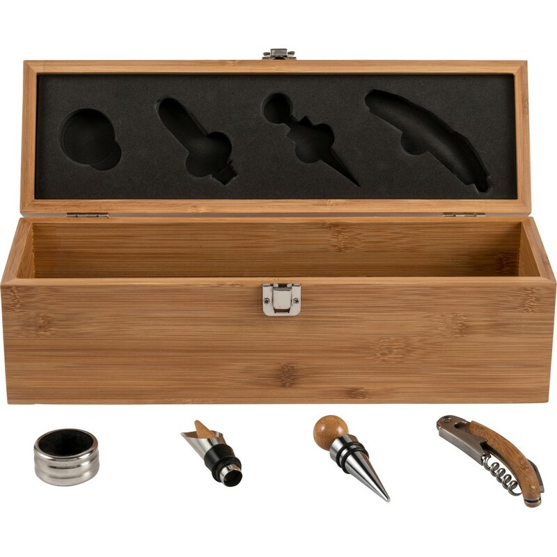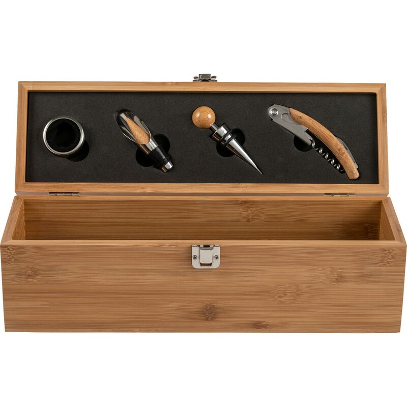Bambusowy zestaw do wina, 4 el., skrzynka do wina V7989-17
