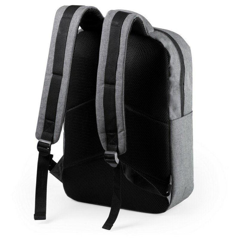 Plecak z miękką przegrodą na laptopa 15" i tablet 10", wykonany z RPET, gniazdo USB do ładowania telefonów (kabel dołączony, power-bank nie dołączony), miękki tył i paski na ramię