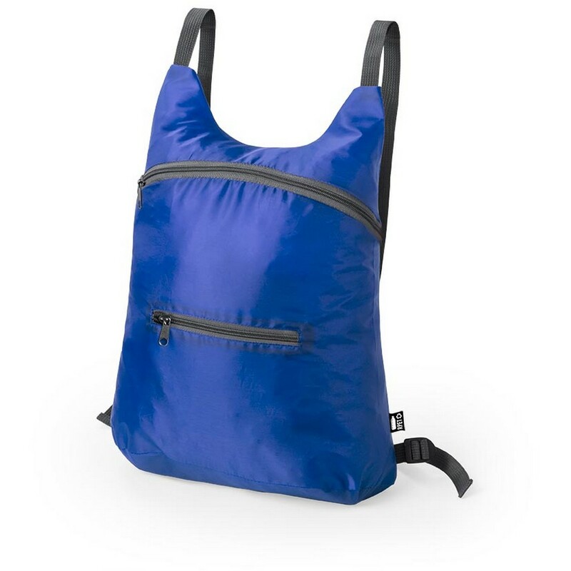 Składany plecak wykonany z RPET, przegroda główna i przednia kieszeń na zamek błyskawiczny