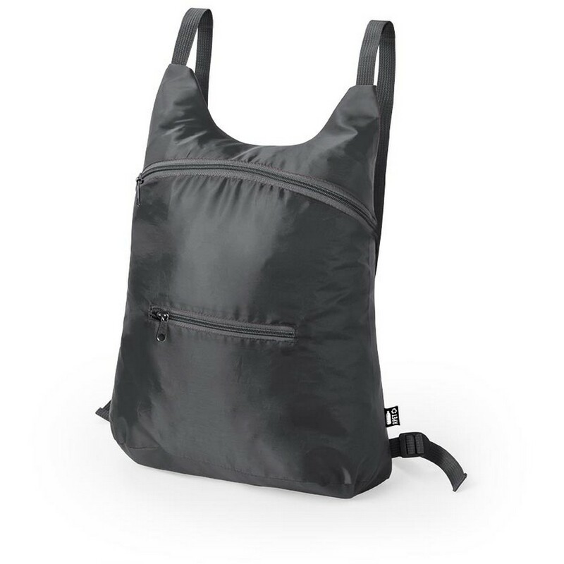 Składany plecak wykonany z RPET, przegroda główna i przednia kieszeń na zamek błyskawiczny