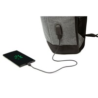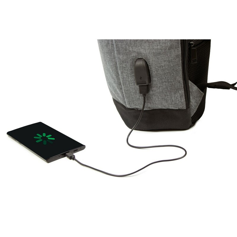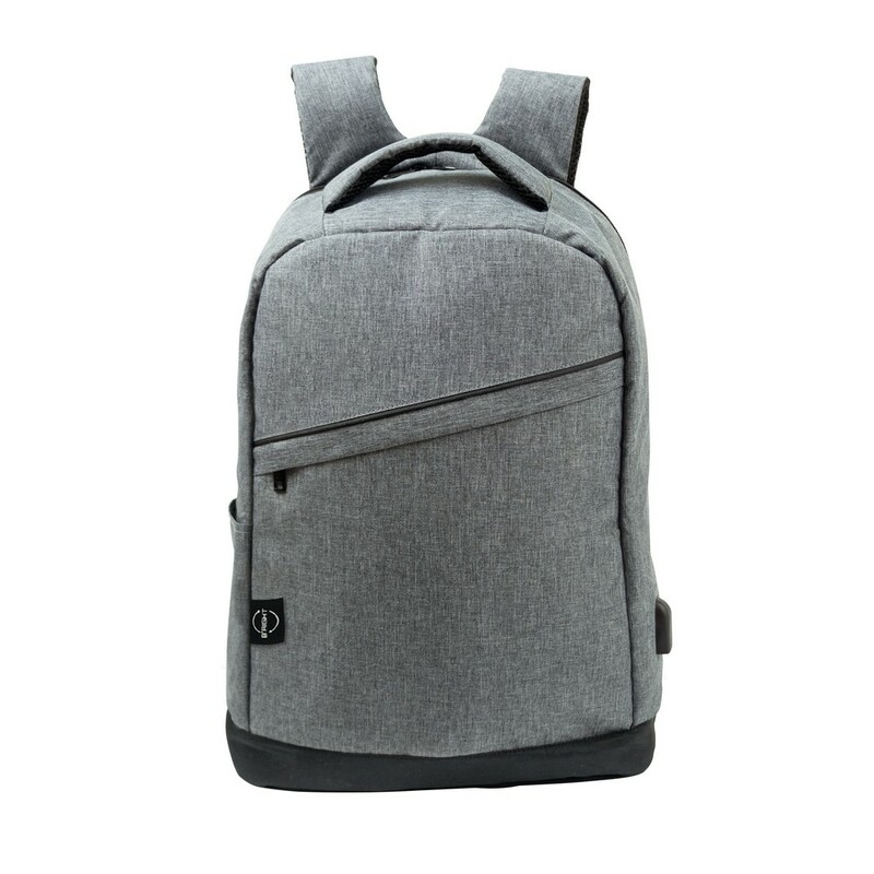 Plecak na laptopa 15,6" B'RIGHT, wykonany z RPET, zgodny z certyfikatem GRS (Global RecycIed Standard), przegroda główna i kieszeń przednia na zamek błyskawiczny, miękka przegroda na laptopa, różne przegrody w środku w tym 1 na zamek błyskawiczny (z możliwością odczepienia, mocowana na rzep), 1 kieszeń boczna, 1 zewnętrzna kieszeń na zamek błyskawiczny na plecach, pasek do zamocowania na torbie podróżnej, port USB z kablem do ładowania (power-bank nie jest dołączony), miękki tył i regulowane paski na ramię