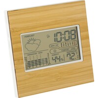 Stacja pogodowa, zegar, kalendarz, budzik z opcją drzemki, temperatura, wilgotność powietrza, informacje o pogodzie, bambusowy front
