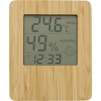 Stacja pogodowa, zegar, data, temperatura, wilgotność powietrza, bambusowy front