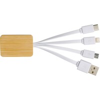 Kabel do ładowania z bambusowym elementem, końcówki: USB, micro USB, USB typu C, kompatybilny z urządzeniami iOS