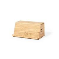 Bambusowy głośnik bezprzewodowy 3W, bezprzewodowa ładowarka 10W V8312-18