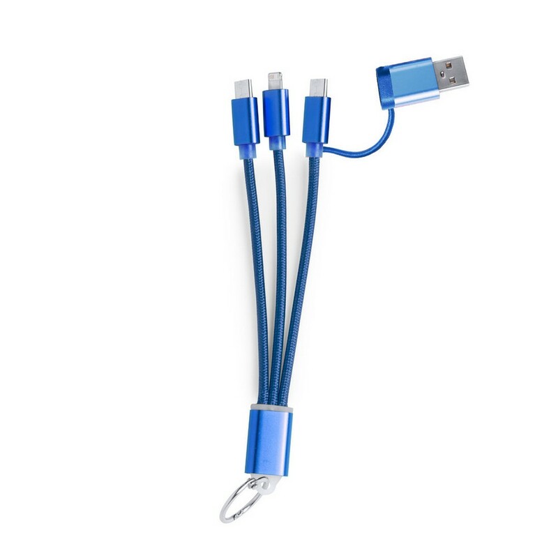 Kabel do ładowania, brelok do kluczy z 4 końcówkami: USB, 2x USB-C oraz 2 w 1 (micro USB oraz kompatybilna z urządzeniami iOS), 5V/2.4A