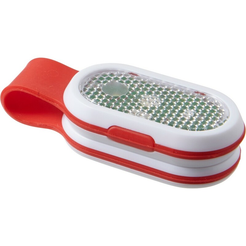 Lampka z czerwoną i białą diodą COB LED o dużej mocy, posiada dwa magnesy połączone silikonowym paskiem