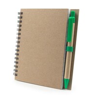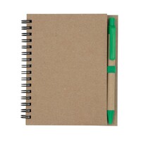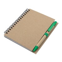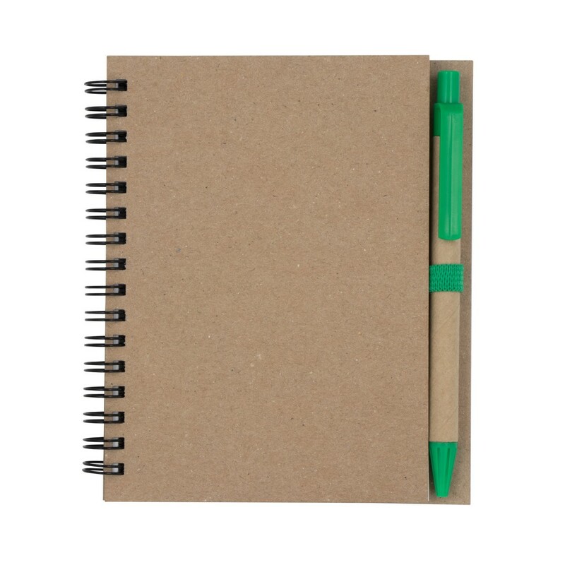 Notatnik A6 (50 kartek 80 g/m2 w linie), twarda okładka z kartonu z recyklingu, spiralne bindowanie, w komplecie długopis z trzonem z kartonu z recyklingu i kolorowymi elementami (wyprodukowany w Ukrainie / made in Ukraine)