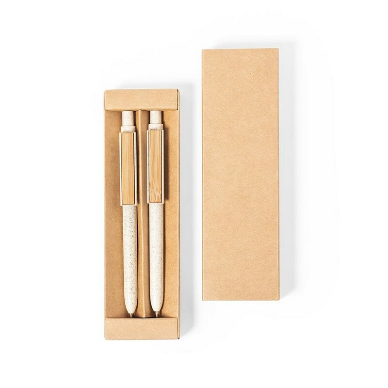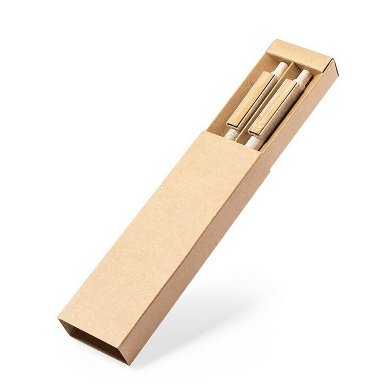 Zestaw piśmienniczy ze słomy pszenicznej w etui, długopis, ołówek mechaniczny (wkład 0,5 mm), bambusowe klipsy