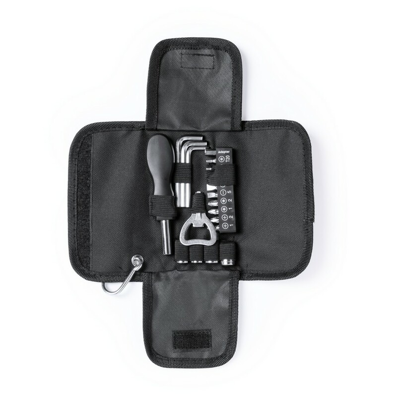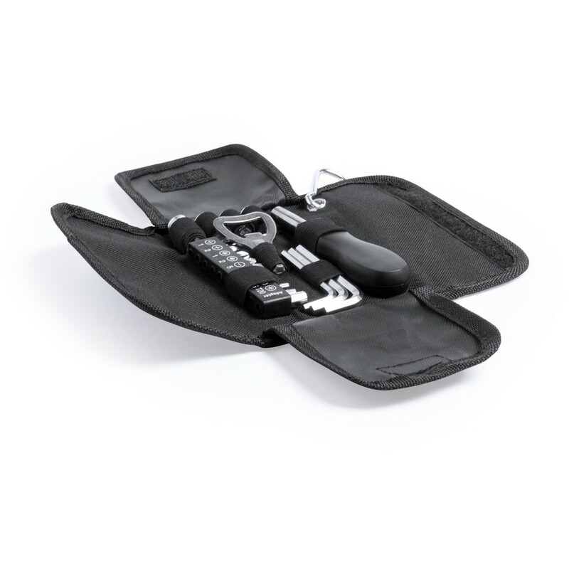 Zestaw narzędzi, 19 el., w zestawie śrubokręt z kilkoma końcówkami, 3 klucze imbusowe, w etui z karabińczykiem