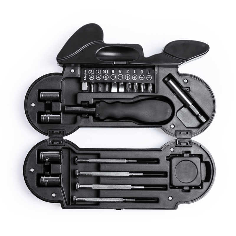 Zestaw narzędzi 21 szt., w opakowaniu w kształcie motocykla z 4 lampkami LED