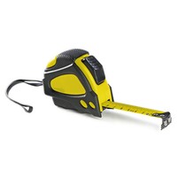 Miara 5 m z uchwytem ułatwiającym noszenie oraz dodatkowym klipem umożliwiającym przyczepienie np. do paska, na końcu znajduje się magnetyczny zaczep ułatwiający korzystanie z miary, produkt wykonany z metalu i plastiku