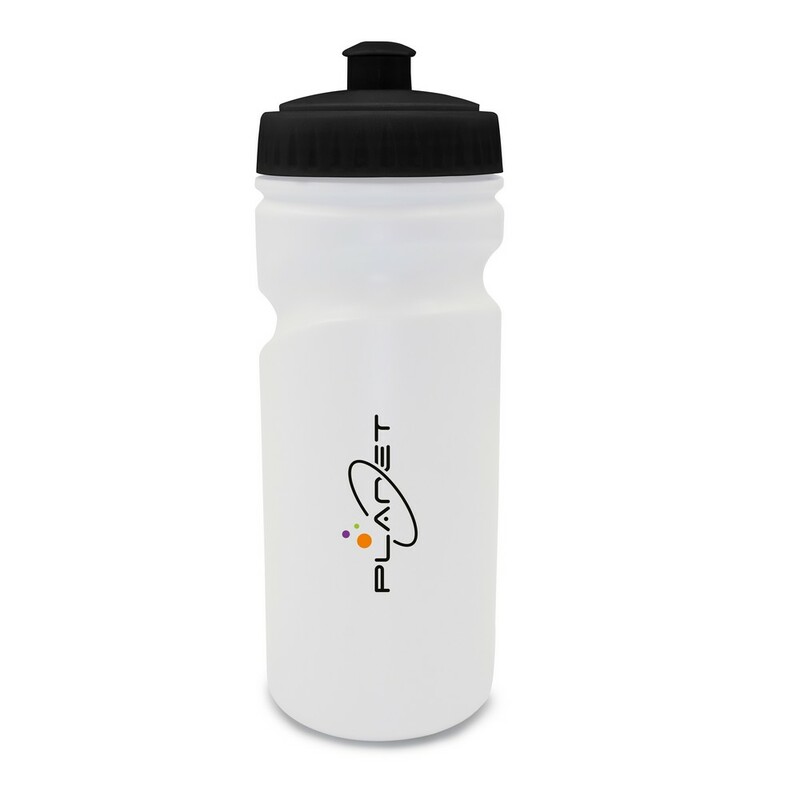 Bidon 500 ml z kolorową zakrętką, posiada zamknięcie w postaci dzióbka ułatwiającego picie oraz profilowanie, dzięki któremu bidon lepiej leży w dłoni, produkt wykonany z PE i PP