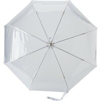 Parasol manualny, 8 przezroczystych paneli, trzon i rama z włókna szklanego i aluminium, plastikowa rączka, zapięcie na rzep
