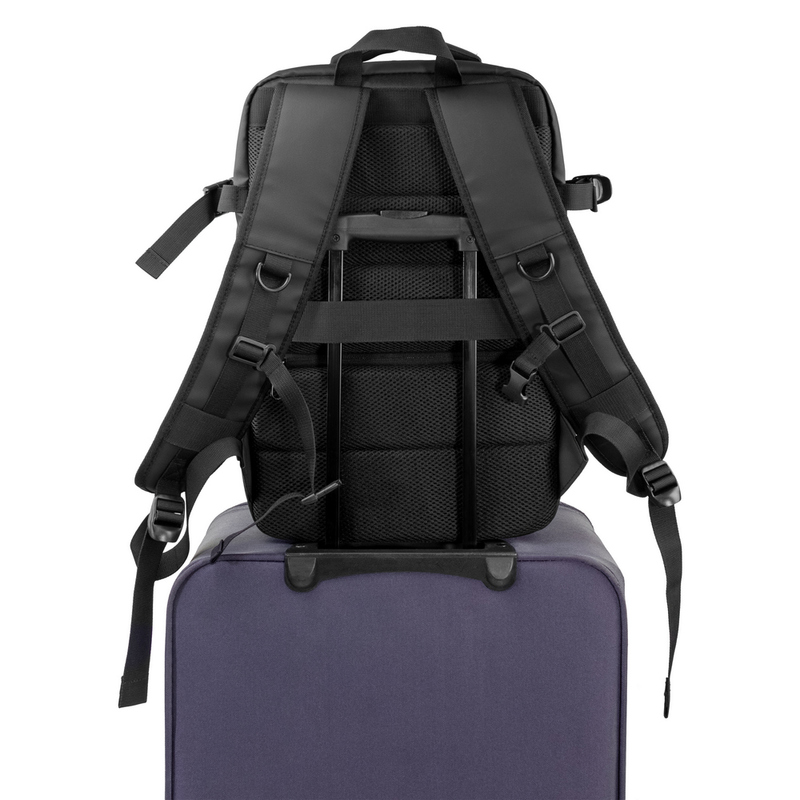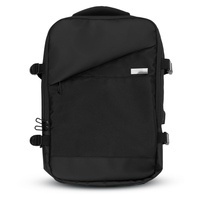 Plecak kabinowy Exclusive Collection, rozszerzalna konstrukcja pomaga dostosować wymiary plecaka do wymogów transportu oraz indywidualnych potrzeb użytkownika, dwie przegrody główne zamykane na zamek błyskawiczny, dwa regulowane paski kompresyjne ułatwiające stabilizacje plecaka, miękkie i regulowane paski na ramię umożliwiające dopasowanie ich długości do własnych preferencji, produkt wykonany z poliestru i PU