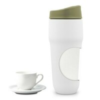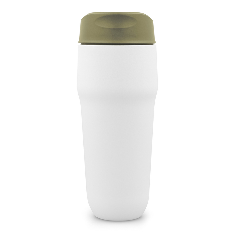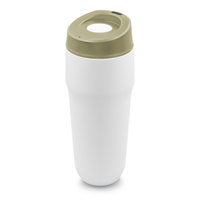 Kubek termiczny 400 ml Air Gifts, posiada podwójne ścianki ze stali nierdzewnej i ceramiki z próżnią między ściankami, co spowalnia oddawanie temperatury na zewnątrz, zachowując funkcje termosu, plastikowe wieczko z przyciskiem otwarcia/zamknięcia ustnika umożliwiającym obsługę jedną ręką, wieczko może zostać rozkręcone w celu ułatwienia czyszczenia, matowe wykończenie, produkt wykonany ze stali nierdzewnej, ceramiki i plastiku, utrzymuje temperaturę napojów gorących do 15 godzin +leakproof
