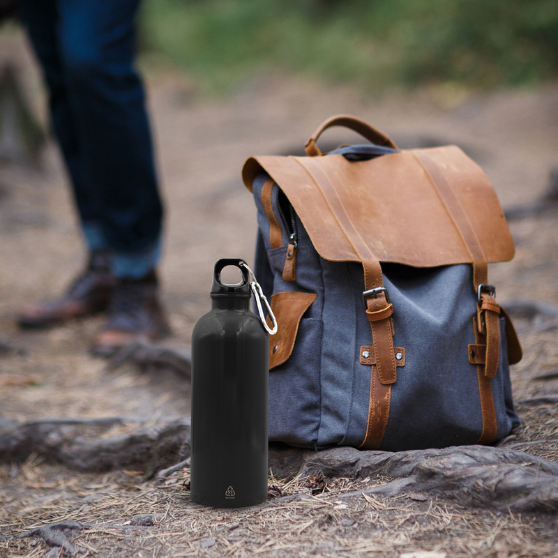 Butelka sportowa 500 ml z karabińczykiem umożliwiającym przypinanie, zalecana wyłącznie do zimnej wody, błyszczące wykończenie, produkt wykonany ze stali nierdzewnej