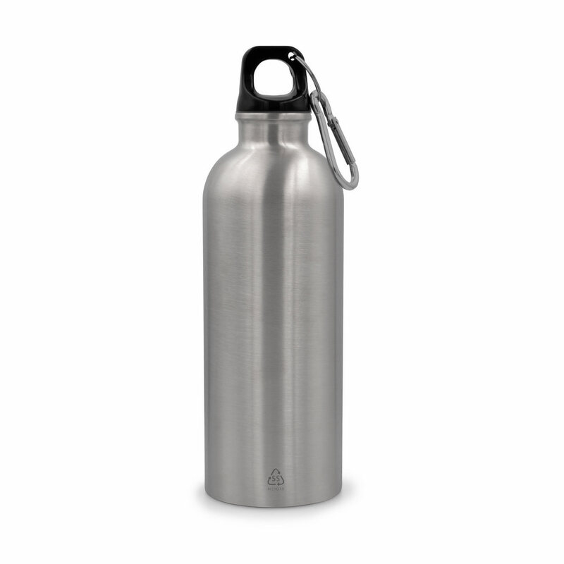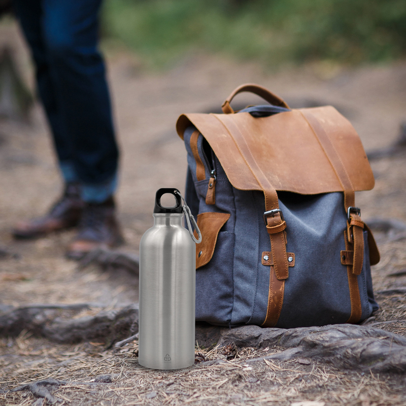 Butelka sportowa 500 ml z karabińczykiem umożliwiającym przypinanie, zalecana wyłącznie do zimnej wody, błyszczące wykończenie, produkt wykonany ze stali nierdzewnej