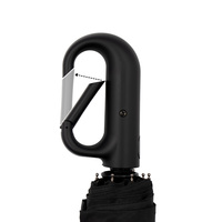 Parasol automatyczny, posiada 8 paneli oraz plastikową rączkę z przyciskiem i karabińczykiem umożliwiającym przypinanie, funkcja automatycznego otwierania i składania, zapięcie na rzep, czarny pokrowiec w komplecie, produkt wykonany między innymi z pongee 180T