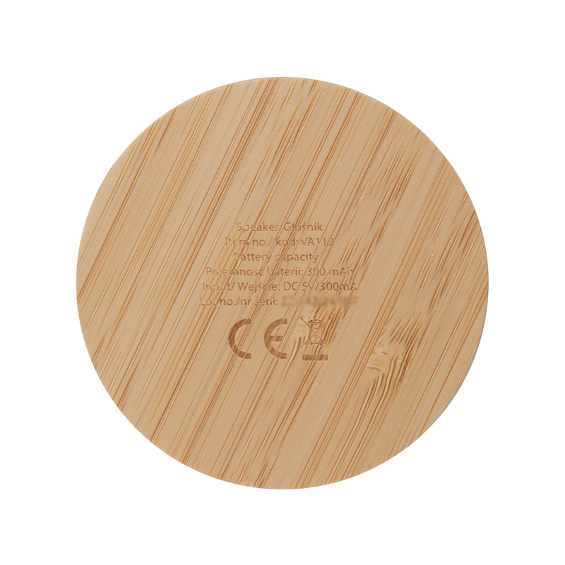 Głośnik bezprzewodowy 3W, BT 5.4, posiada obudowę wykonaną z aluminium z recyklingu oraz bambusową podstawę, wbudowana bateria 300 mAh wystarcza na ok. 2-3h pracy głośnika, zasięg do 10 m, wejście USB-C, w komplecie kabel USB-C, produkt wykonany z aluminium z recyklingu oraz bambusa