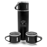 Zestaw podróżny, termos 420 ml, posiada podwójne ścianki ze stali nierdzewnej z próżnią między ściankami, co spowalnia oddawanie temperatury na zewnątrz, 3 kubki 150 ml w zestawie, produkt wykonany ze stali nierdzewnej i plastiku, utrzymuje temperaturę napojów gorących do 20 godzin +leakproof