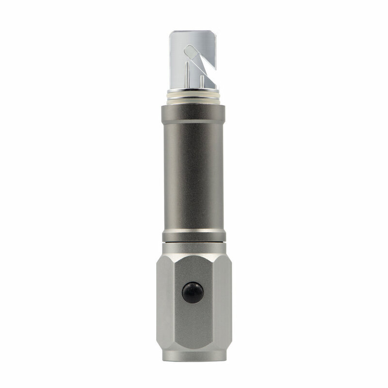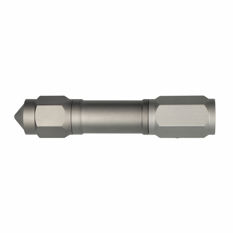 Latarka bezpieczeństwa o mocy 60 lumenów, posiada młotek bezpieczeństwa oraz przecinak do pasów bezpieczeństwa, produkt wykonany z aluminium