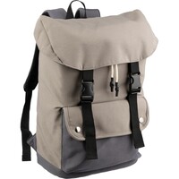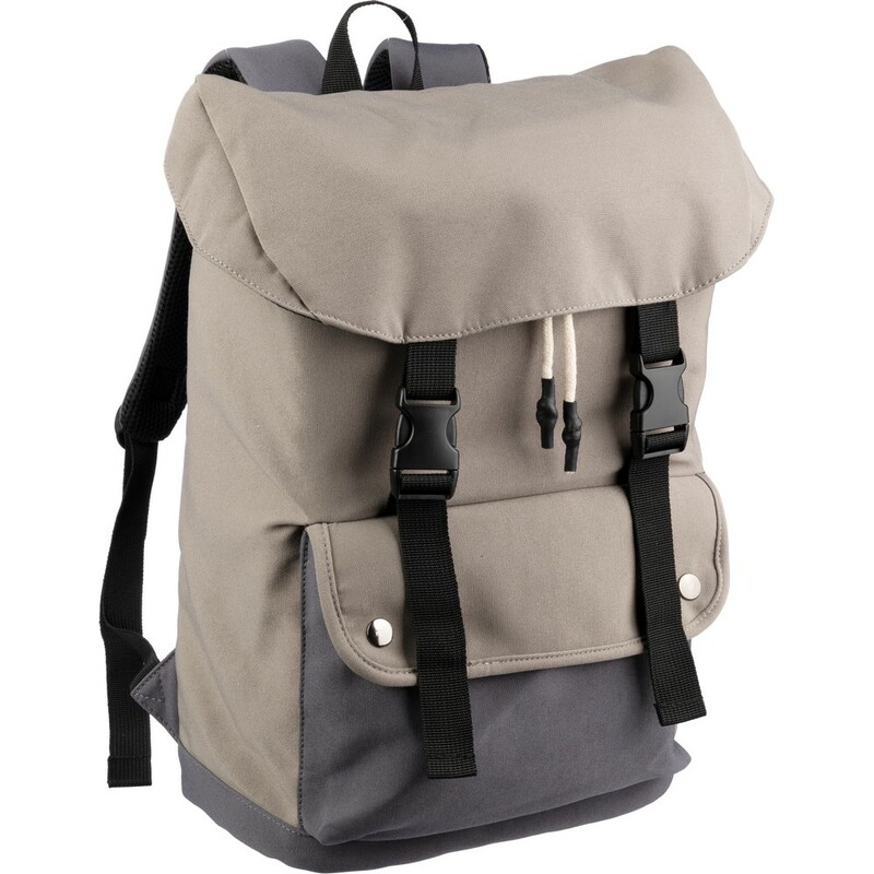 Plecak na laptopa 15", pojemna, rozwijalna przegroda która umożliwia zwiększanie pojemności plecaka, ściągana sznurkiem z zapięciem na klamrę, przegroda na laptopa 15", przednia kieszeń zapinana na metalowe guziki, regulowane paski na ramię, można w nim przenieść książki, laptopa oraz drobne zakupy lub przybory, produkt wykonany z poliestru, wyściółka z PU, tył i spód z pianki PE (8mm)