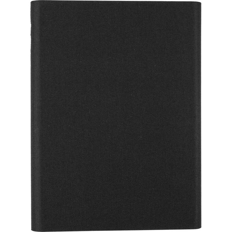 Teczka konferencyjna w formacie ok. A5, zawiera notatnik posiada 64 kartki w linie, przegródki na dokumenty, uchwyt na telefon, zamknięcie magnetyczne, pakowany pojedynczo w kraftowy rękaw, produkt wykonany z RPET