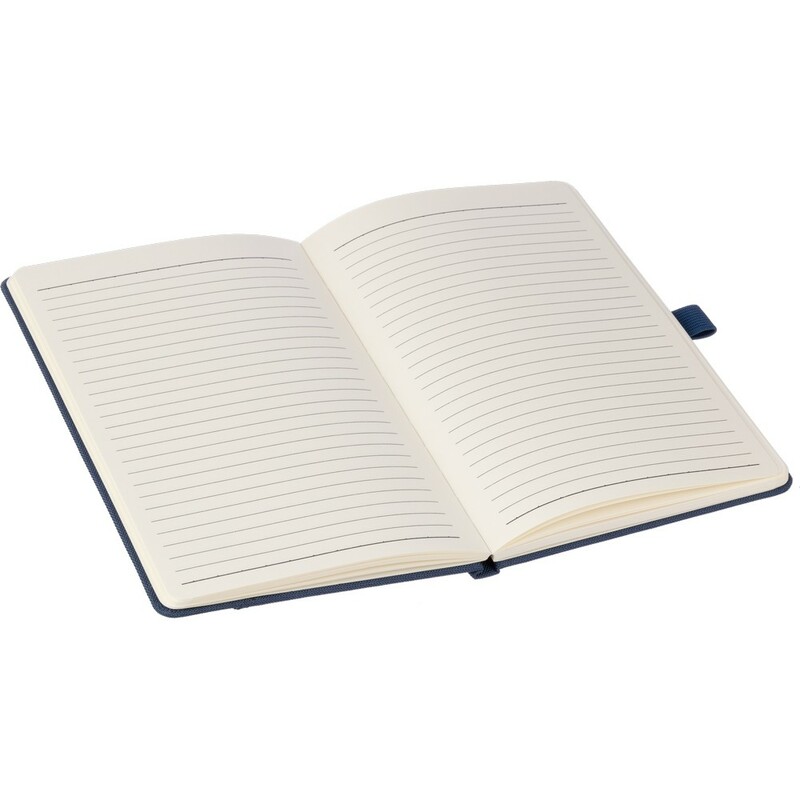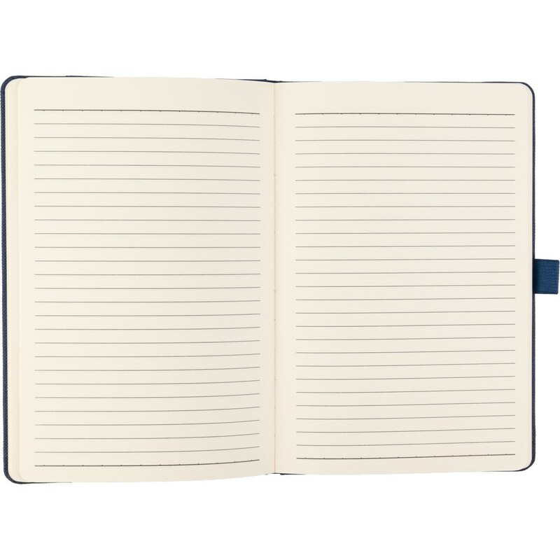 Notatnik w formacie ok. A5, posiada 100 stron w linie, zmieści się do szkolnego plecaka, pakowany pojedynczo w bibułkę, produkt wykonany z RPET