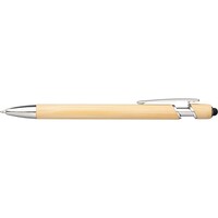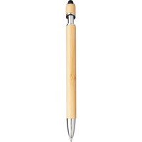 Długopis z metalowym klipem, można go przyczepić do notatnika lub koszuli, posiada czarny wkład, produkt wykonany z bambusa