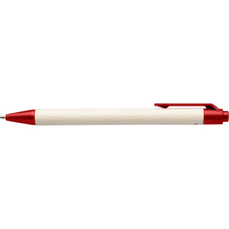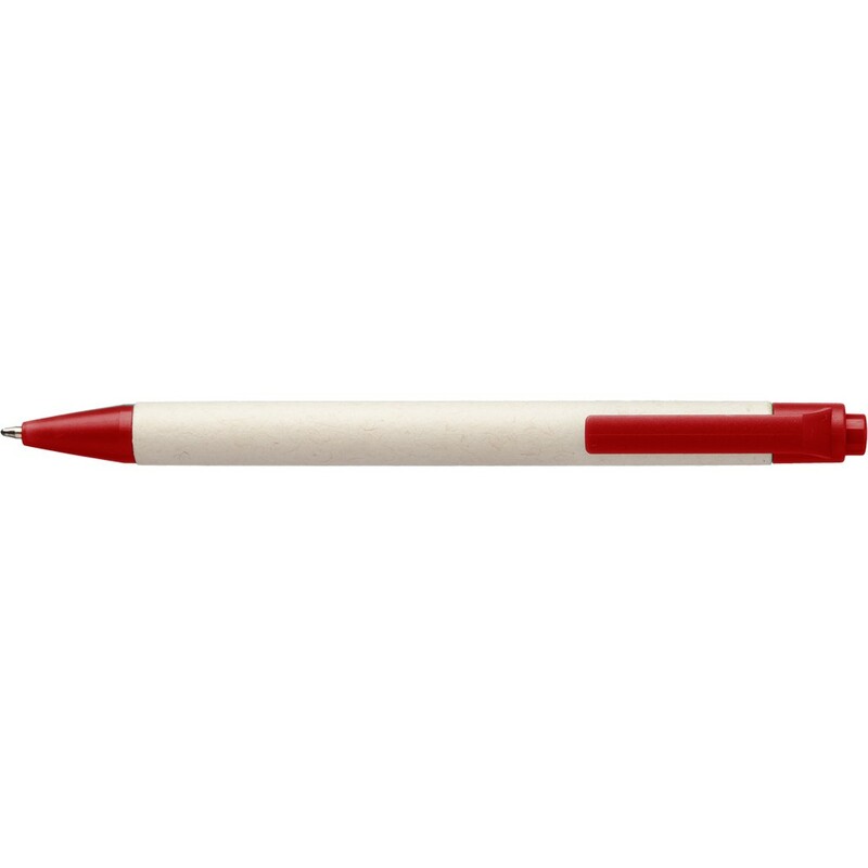 Długopis z kolorowym klipem, można go przyczepić do notatnika lub koszuli, ikona ABS z recyklingu na produkcie, wyróżnia go nietypowy materiał wykonania, produkt wykonany z kartonika po mleku z recyklingu i ABS